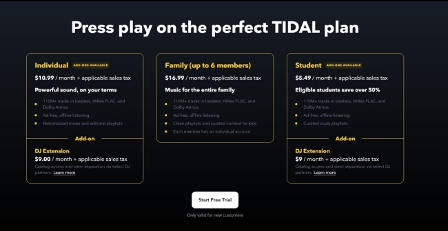 Step 2. On the web page, select any paid subscription plan, such as Tidal HiFi or Tidal HiFi Plus.